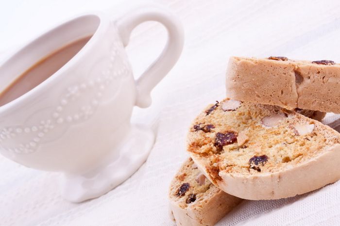 Пицца по утрам бывает крайне редко, а вот сладкая выпечка (к примеру, тортик, пирожное, булочка с изюмом) — самое то. Еще пользуется огромной популярностью печенье бискотти.