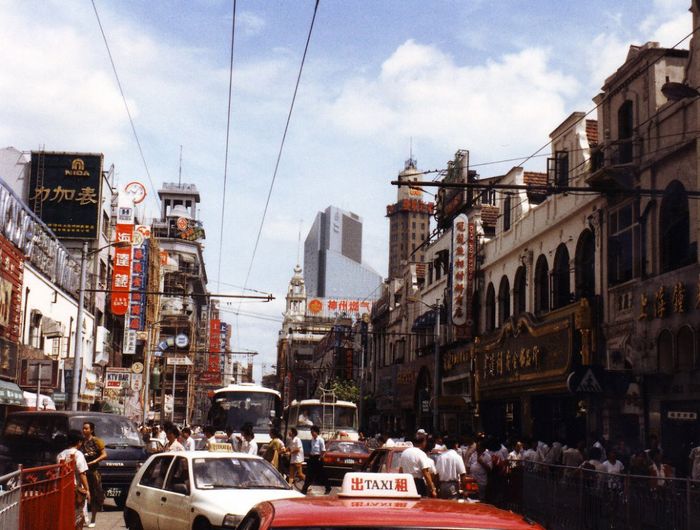 А в Шанхае в 92-м году предпринимались отчаянные попытки расчистить главную торговую улицу Nanjing Road (местный «Арбат») для автотранспорта, ограждая ее высокими заборами: