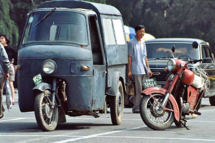 11. В Пекине главный проспект в 1992-м выглядел всё ещё пустовато. И на нём хватало всякой экзотики!