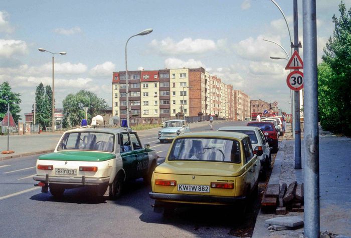 12. С 1992 года в бывших социалистических странах на территории Восточной Европы почти повсеместно произошёл переход от умеренной автомобилизации к предельной. В то же время транспортная инфраструктура старых, исторически сложившихся городов все еще была довольно таки консервативна. Внешне сильнее всего изменился, пожалуй, Восточный Берлин.