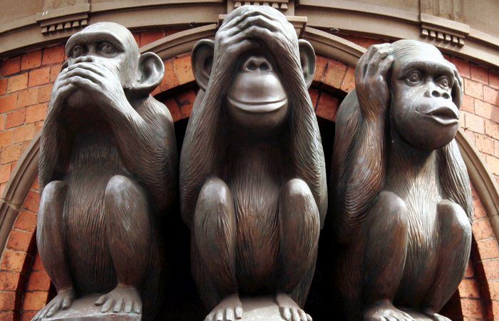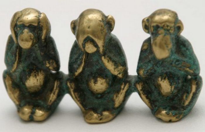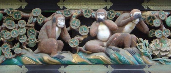 В синтоистском святилище Никко Тосё-гу в городе Никко в Японии находится произведение искусства, известное во всем мире. Над дверью этого храма с XVII века расположено резное панно, изображающее трех мудрых обезьян. Резьба выполненная скульптором Хидари Дзингоро иллюстрирует известную фразу «Ничего не вижу, ничего не слышу, ничего не скажу».