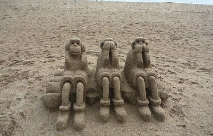 Обезьяны, конечно же, известны всем как «не вижу, не слышу, не говорю», в то время, как на самом деле, у них есть свои имена. Обезьяну, которая закрывает себе уши, зовут Кикадзару, которая закрыла себе рот, — Ивадзару, а Мидзару закрывает глаза.