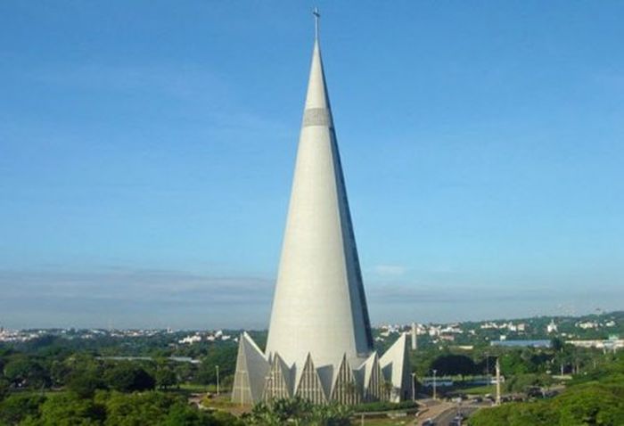 Собор в Маринге (Бразилия) тоже является современной церковью. Она очень сильно выделяется на общем фоне и считается самой высокой церковью в Южной Америке. Высота храмовой колонны – 124 метра. Такой дизайн выбран не просто так, считается, что церковь, которая пронзает небо церковь может привести людей еще ближе к Богу. Внутри святилища обустроена лестница, которая позволяет попасть на верхнюю смотровую площадку этого колосса, но посетителям придется не слабо потрудиться, ведь им надо будет преодолеть целых 598 ступенек. Сверху открывается великолепный вид – весь город предстает как на ладони, и после сложного подъема кажется, что ответы на самые главные вопросы, как никогда, близки.