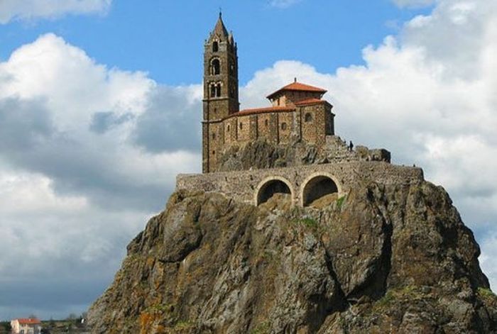 Часовня Святого Михаила сама по себе выглядит довольно привычно, ведь архитектура этого строения вполне соответствует ожиданиям от католических соборов. Самое необычное в этом случае – это скалистый зуб, на котором построена удивительная церковь. Утес этот вулканического происхождения, и скала, возвышающаяся над французским городом Ле-Пюи-ан-Веле (Le Puy-en-Velay), давно была местом паломничества и поклонения (почти тысячу лет). Святилища в ее склонах устраивали еще до римлян.