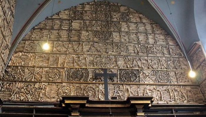 В Базилике Святой Урсулы собрана самая большая мозаика из человеческих останков, она находится в Кельне, Германия. Согласно легенде Святая Урсула была британской принцессой, которая жила в 300-х – 600-х годах нашей эры. Девушка была весьма религиозной, и однажды совершила паломничество по Европе. Урсула не могла путешествовать в одиночку, ее компаньонами были еще 11 тысяч дев. Корабль принцессы чудом достиг берегов Рима за один единственный день, а оттуда ветер направил ее судно уже в Кельн. В те самые годы в Европе зверствовали гунны (кочевники-завоеватели). К несчастью, они схватили и замучили до смерти и Урсулу, и всех ее невинных спутниц.