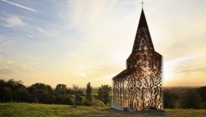 Во многих европейских городах соборам отведено центральное место, они тесно взаимосвязаны с их историей. Однако в наше время многовековые церкви сегодня становится все сложнее заполнить свои скамьи верными прихожанами, и все чаще они признаются скорее туристическими достопримечательностями, чем местами поклонения. Чтобы обратить внимание на людность и одновременно обесценивание соборов, архитекторы Петерьян Гийс и Арну Ван Ваеренберг (Pieterjan Gijs, Arnout Van Vaerenbergh) построили в городе Борглоон, Бельгия, очень необычную современную церковь. Проект получил название «Читая между строк», и по задумке его авторов эта церковь одновременно и есть, и нет.